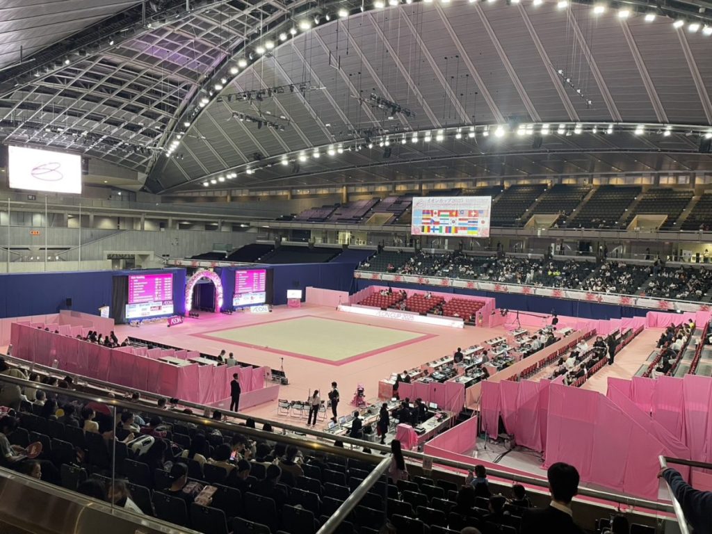 世界三大新体操大会の一つとして知られる「イオンカップ世界新体操クラブ選手権」において、当社は演出および進行管理を担当しました。本大会には、アメリカ・ウクライナ・イタリア・ハンガリーをはじめとして18の国と地域から20クラブが参加し、世界トップレベルのアスリートがクラブ世界一を競いました。